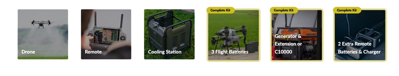Paired with our generator based charging system and cooling station, this complete kit is built for nonstop spraying and minimal downtime. It is the only spray drone kit we offer that includes free coaching at pickup, making it the ultimate solution for serious operators who want to fly right, right away.