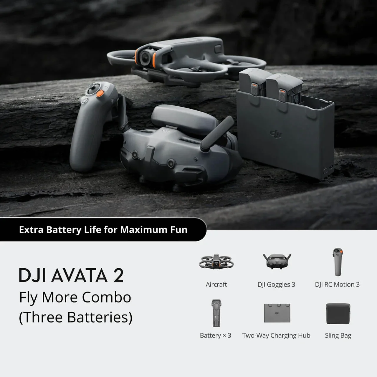 DJI Avata 2 delivers an adrenaline-pumping immersive FPV drone experience with improved imaging, safety, and battery life. Amp up the fun when you pair Avata 2 with the new DJI Goggles N3 and DJI RC Motion 3.
